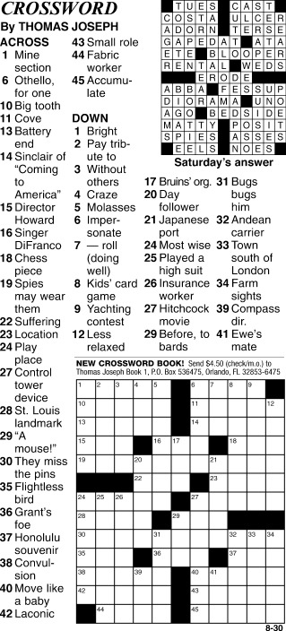 Today’s Thomas Joseph Crossword offer a simple, enjoyable, and rewarding experience for puzzle lovers of all skill levels. They provide a mental challenge, enhance cognitive functions, and are easily accessible at no cost. So, whether you’re a seasoned crossword enthusiast or a newcomer, printable crosswords are a fun way to engage your mind and pass the time. Start solving today and experience the joy of these classic puzzles!