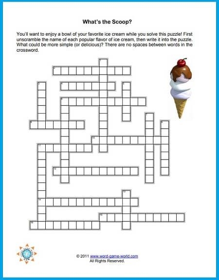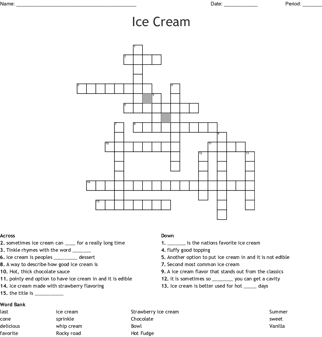 Ice Cream Crossword Puzzle Printable Printable Crossword Puzzles Online