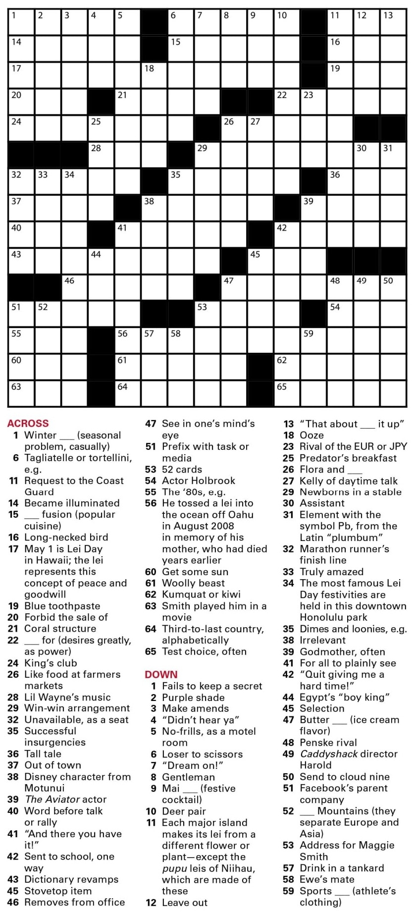 Download and Print Wall St Journal Crossword Listed below