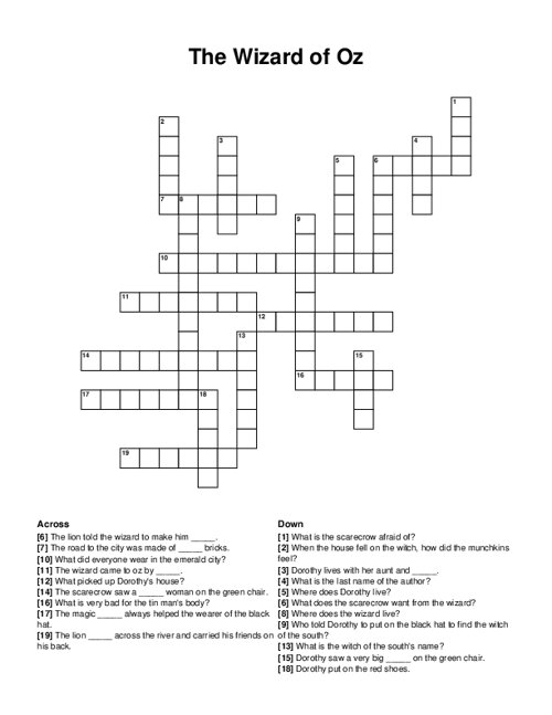 Wizard Of Oz Crossword Puzzle Printable offer a simple, enjoyable, and rewarding experience for puzzle lovers of all skill levels. They provide a mental challenge, enhance cognitive functions, and are simple to access at no cost. So, whether you’re a seasoned crossword enthusiast or a newcomer, printable crosswords are a fun way to engage your mind and pass the time. Start solving today and experience the joy of these classic puzzles!