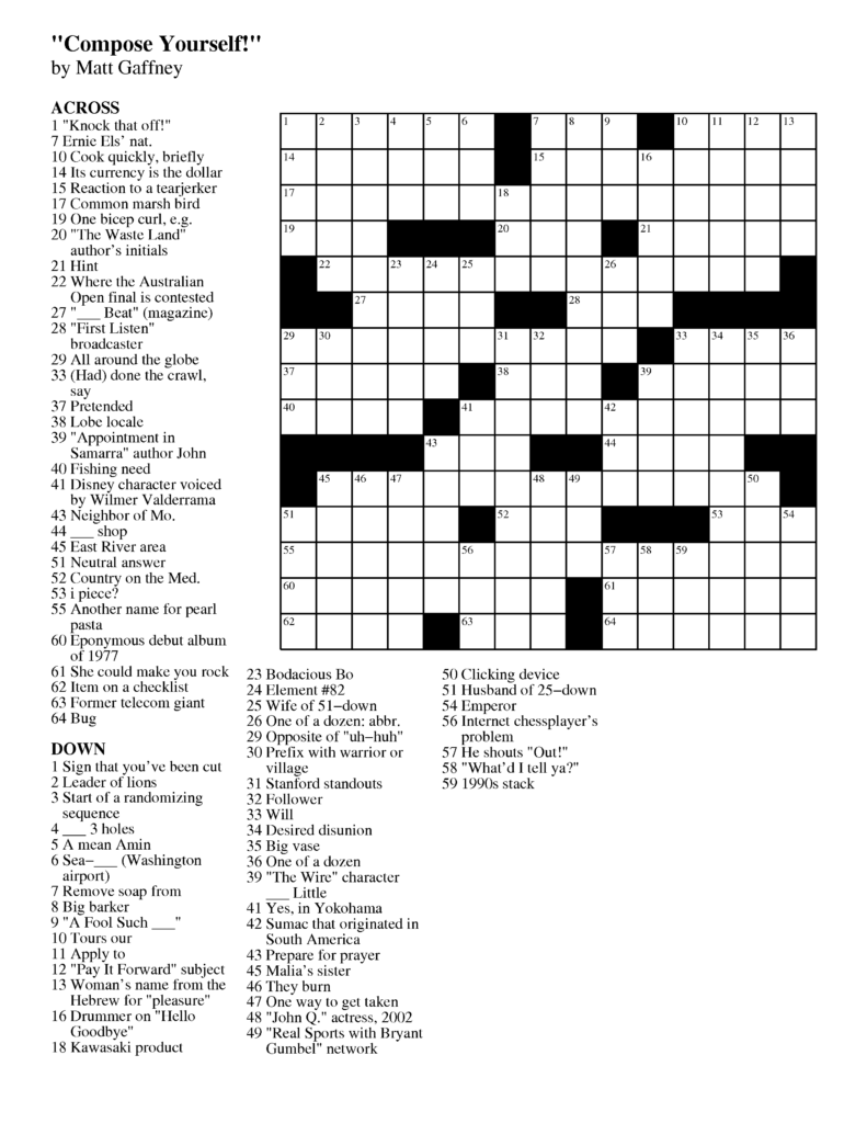 Printable Wsj Crossword Printable Crossword Puzzles